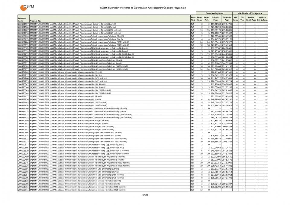 2020 2 yıllık üniversite tavan ve taban puanları 2020