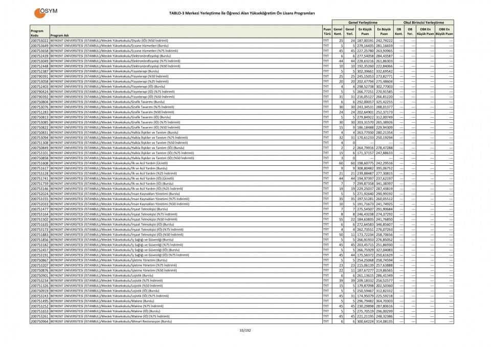2020 2 yıllık üniversite tavan ve taban puanları 2020