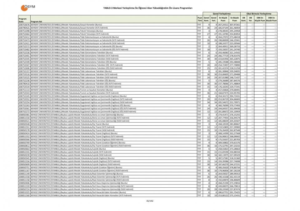 2020 2 yıllık üniversite tavan ve taban puanları 2020