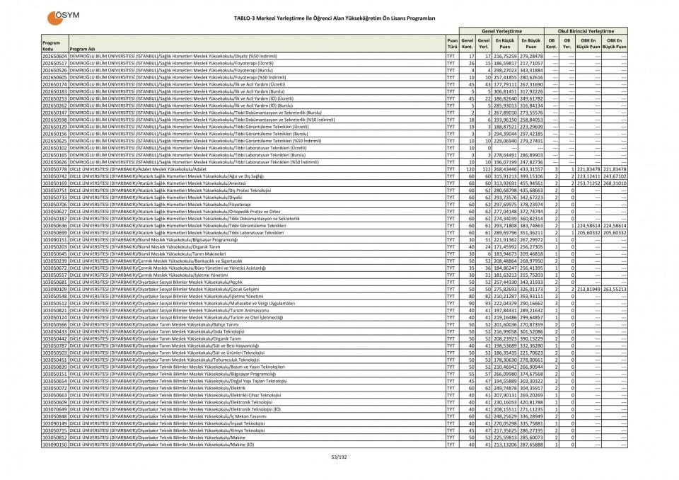 2020 2 yıllık üniversite tavan ve taban puanları 2020