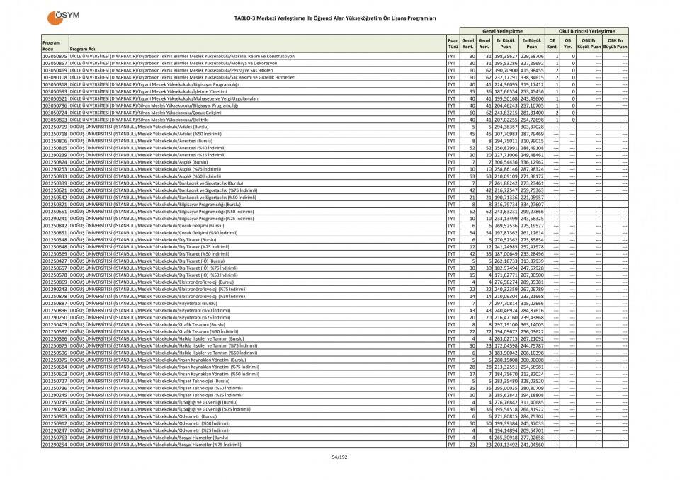 2020 2 yıllık üniversite tavan ve taban puanları 2020