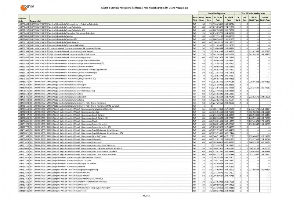 2020 2 yıllık üniversite tavan ve taban puanları 2020