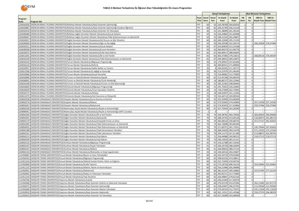 2020 2 yıllık üniversite tavan ve taban puanları 2020