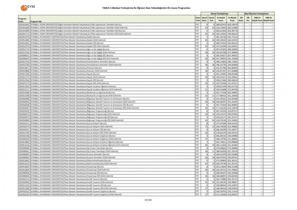 2020 2 yıllık üniversite tavan ve taban puanları 2020