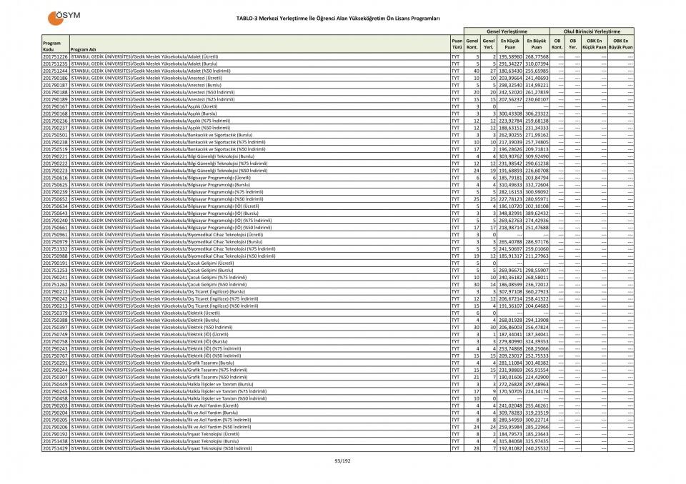 2020 2 yıllık üniversite tavan ve taban puanları 2020
