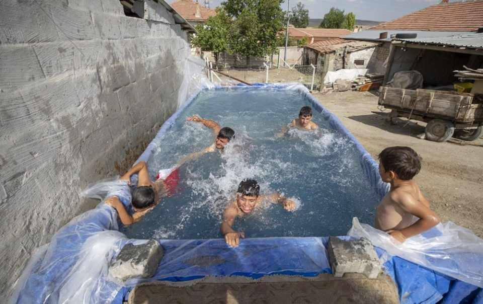 Çocuklarını tatile götüremeyen baba römorku havuza çevirdi