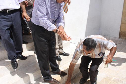 Konukları serinletmek için ikram edilen kolonya şişesinin kapağı tam Milletvekili Akif Gülle'ye kolonya dökülürken çıkınca, yarım şişe kolonya vekilin üstüne boca edilmiş oldu.