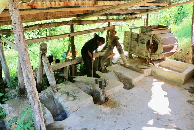 Çayın akıntısıyla çalışan tokmaklarıyla dibeğine yerleştirilen buğdayı kabuğundan ayırıp bulgura dönüştüren değirmenin bu seneki mesaisi başladı.