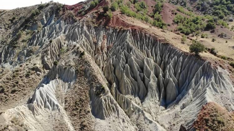 Kırıkkale'de doğal oluşumu ile dikkat çeken dağ yamacındaki doğal oluşumlar, farklı yapısıyla görenleri kendine hayran bırakıyor.