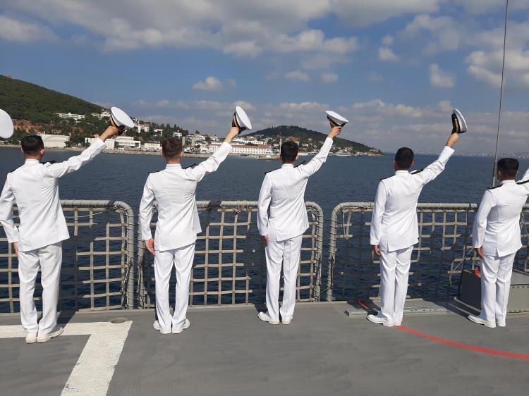 Bakanlığın sosyal medya hesabından, tatbikata katılacak MSÜ Deniz Harp Okulu 3'üncü sınıf öğrencilerinin uğurlama fotoğrafları paylaşıldı.