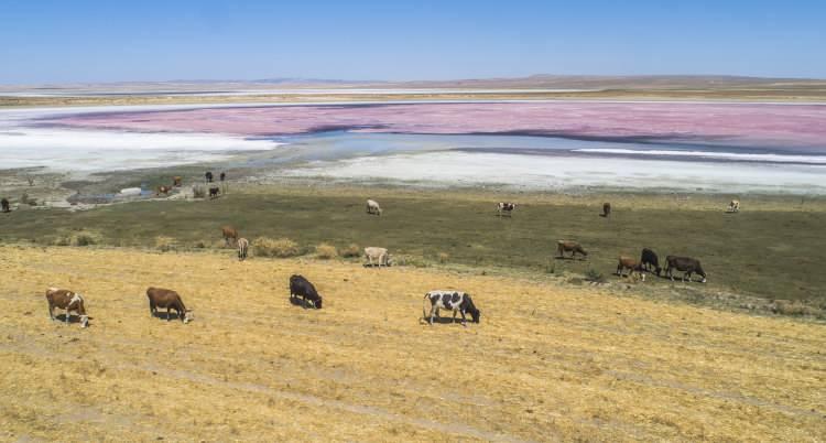 Küçük Göl, kuruyunca pembeye büründü