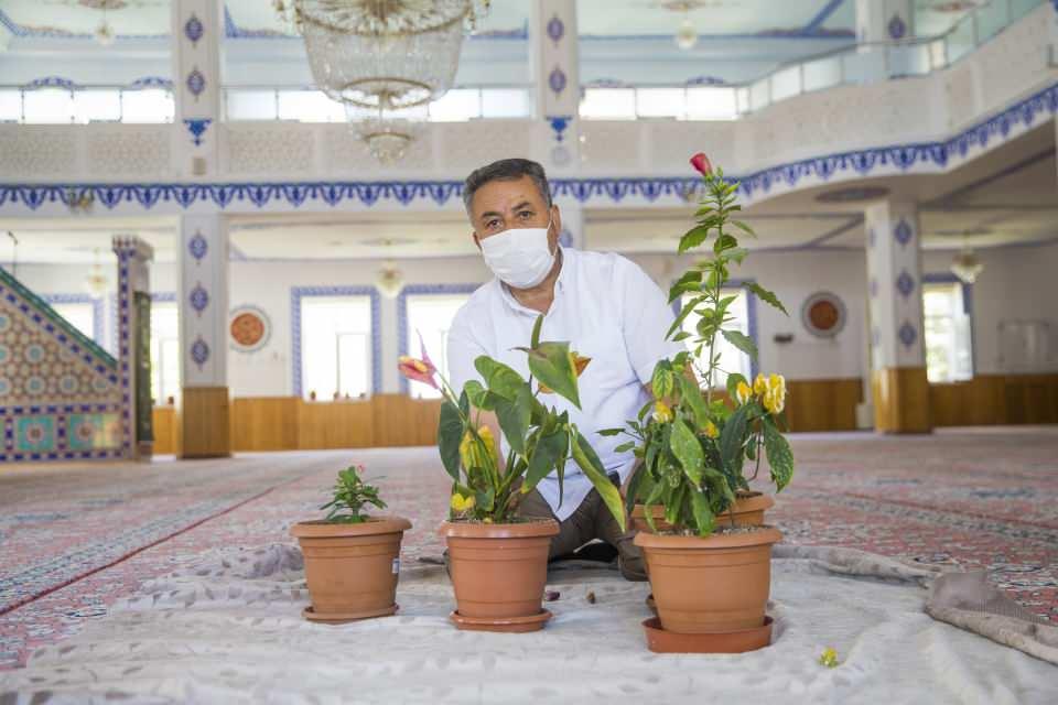 İmamın çiçek sevgisi camiyi 'bahçeye' çevirdi
