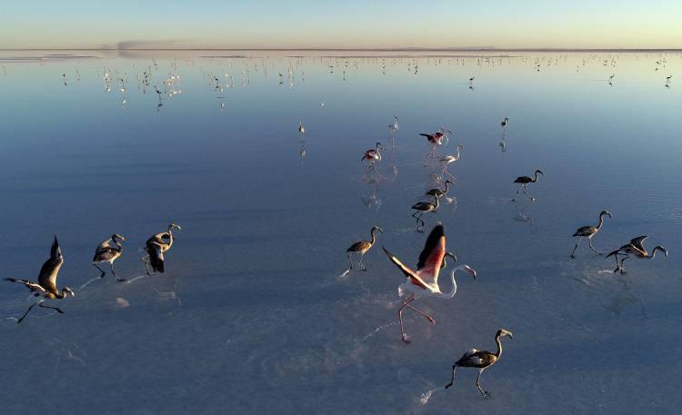 Türkiye ve Akdeniz havzasının en büyük flamingo kolonisine ev sahipliği yapan Tuz Gölü'nde, bu yıl kuluçkadan çıkan on binlerce yavru, uçacak olgunluğa erişti.