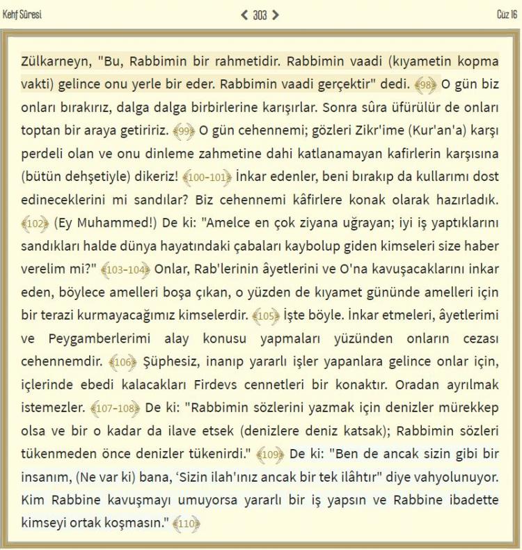 Kehf Suresi Arapça okunuşu ve Türkçe meali