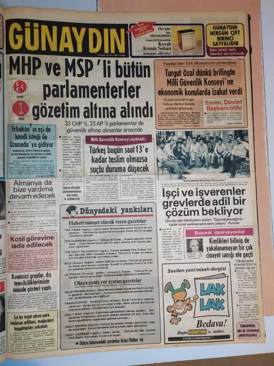 12 Eylül darbesi manşetlere ve fotoğraflara böyle yansıdı!