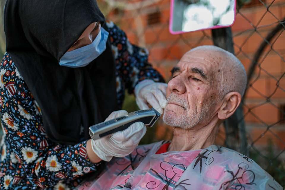Genç kızın saçlarını kestiği 78 yaşındaki Salih Yüksel ise salgın dolayısıyla uzun zamandır mahalleden dışarı çıkmadığını anlattı. Reyhan'ın her konuda kendilerine destek verdiğini belirten Yüksel, "İlahiyatçı kızımızdan Allah razı olsun.