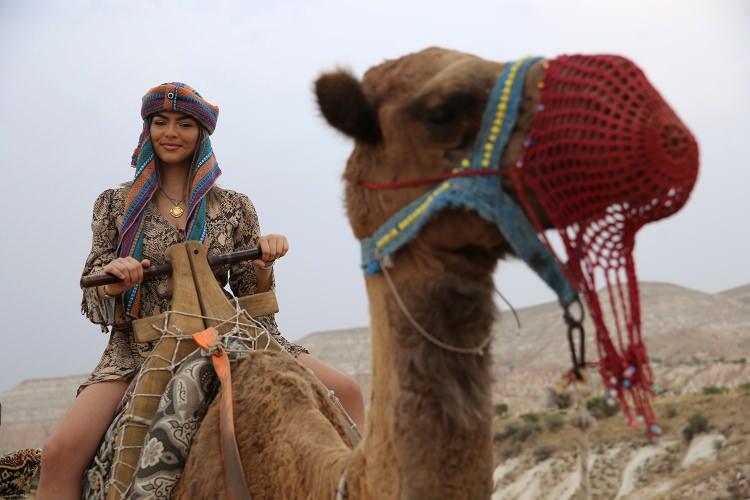 Kapadokya'nın masalsı manzarasını deve safari ile keşfediyorlar
