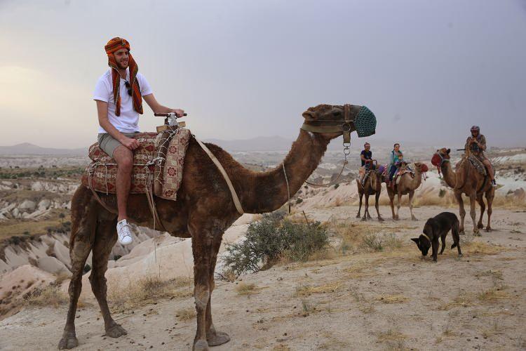 Kapadokya'nın masalsı manzarasını deve safari ile keşfediyorlar
