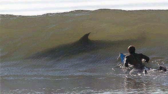 "Bir sörfçünün son fotoğrafları": SAHTE. Fotoğraftaki köpekbalığı değil, sadece bir yunus...