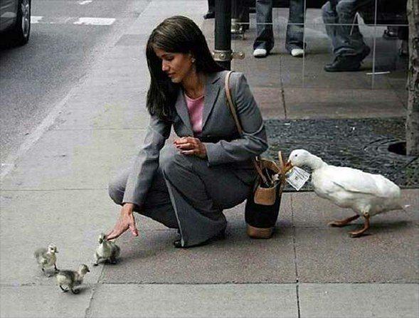 Yavrular kadının dikkatini dağıtırken, anneleri çantadan para çalıyor. SAHTE. Fotoğraflar bir reklam kampanyası sırasında çekildi ve hayvanlar oyuncaktı.