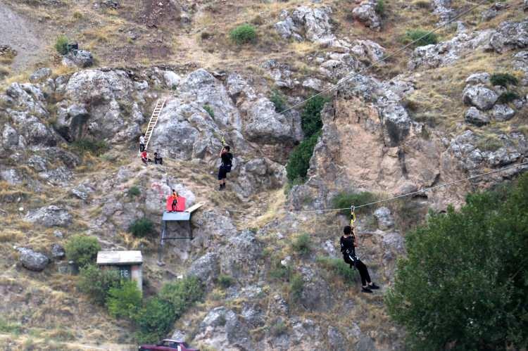 Fırat Nehri üzerine kurulan 'zipline' yoğun ilgi!