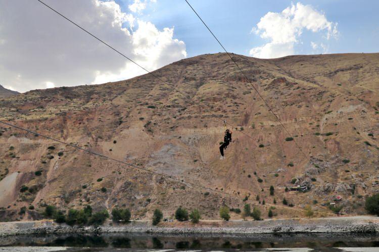 Fırat Nehri üzerine kurulan 'zipline' yoğun ilgi!