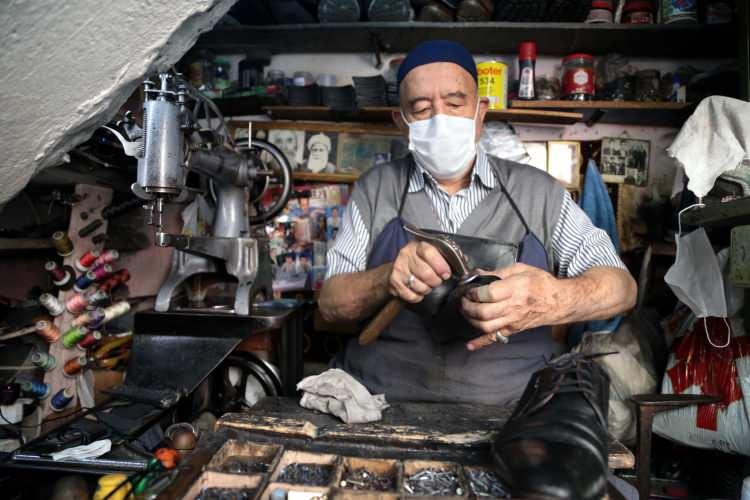 71 yıllık ayakkabı tamircisi Nihat Malacı, AA muhabirine, çocukken çırak olarak başladığı işi severek yapmaya devam ettiğini söyledi.