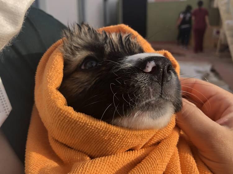 Ünitede görevli ekip salgınla mücadele ederken "Pamuk" isimli köpek, servisin yakınlarında 7 yavru dünyaya getirdi.