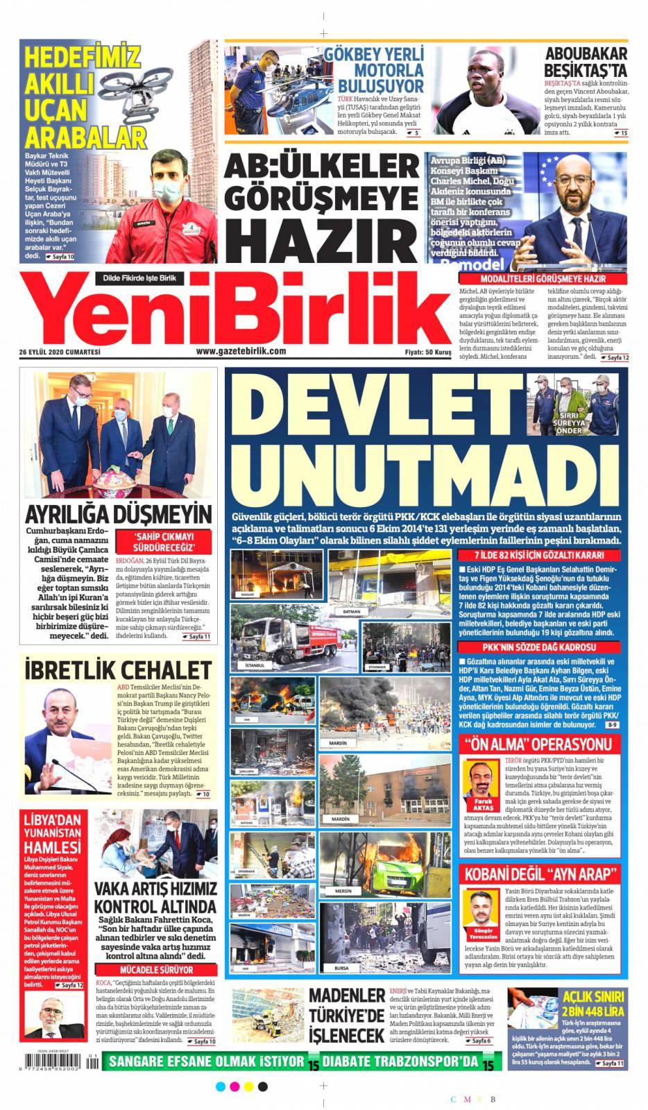 26 Eylül gazete manşetleri