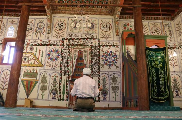 Denizli'nin Baklan ilçesindeki Boğaziçi Camisi, tavan, kemer, sütun, kapı ve minberindeki süslemelerle dikkat çekiyor. Caminin duvarları üzerine çizilen motifler, eski dönem Türk ahşap ve süsleme sanatından örnekler sunuyor.