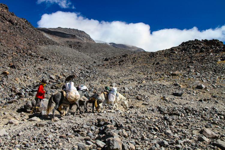 Bu arkadaşlarımız sayesinde dağlara tırmanmamız kolaylaşıyor. Araçla gidebildiğimiz yerden malzemelerimizi alıyorlar, atlara, katırlara yükleyip bizimle birlikte dağın zirvesine doğru yükseliyorlar.
