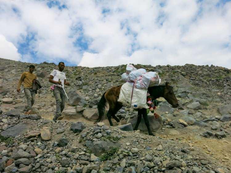 'Türkiye'nin Çatısı'na tırmanan dağcıların yükünü katırlar sırtlıyor
