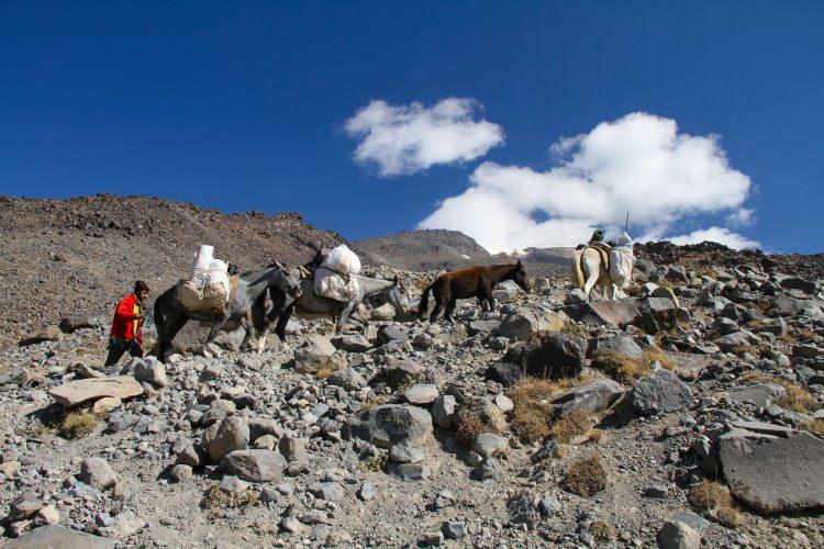 Dağcılardan Ali Tuğrul Doğu da uzun mesafeli tırmanışlarda gereken kamp yükünü taşımanın zor olduğunu, bu nedenle katırlarla taşımanın tercih edildiğini anlattı.