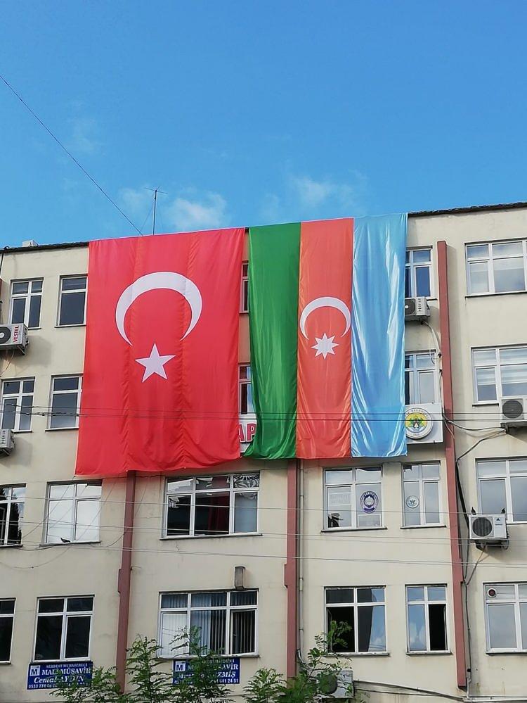 Keşap Belediyesi, Azerbaycan’a destek olmak için belediye binasına Azerbaycan bayrağı astı.