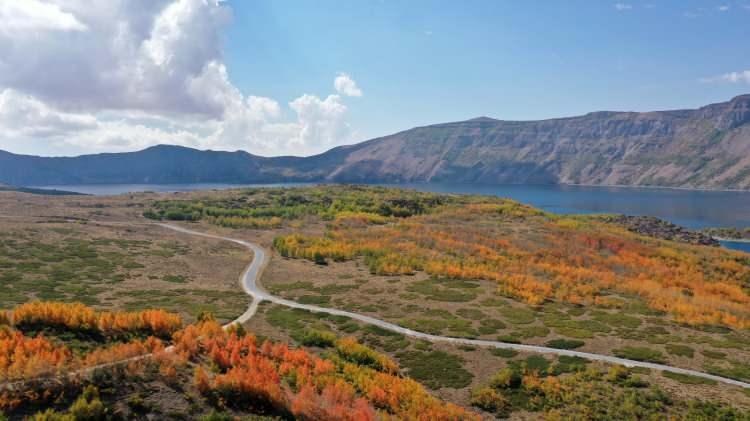 'Yeryüzü cenneti' Nemrut Krater Gölü sonbahar renklerine büründü