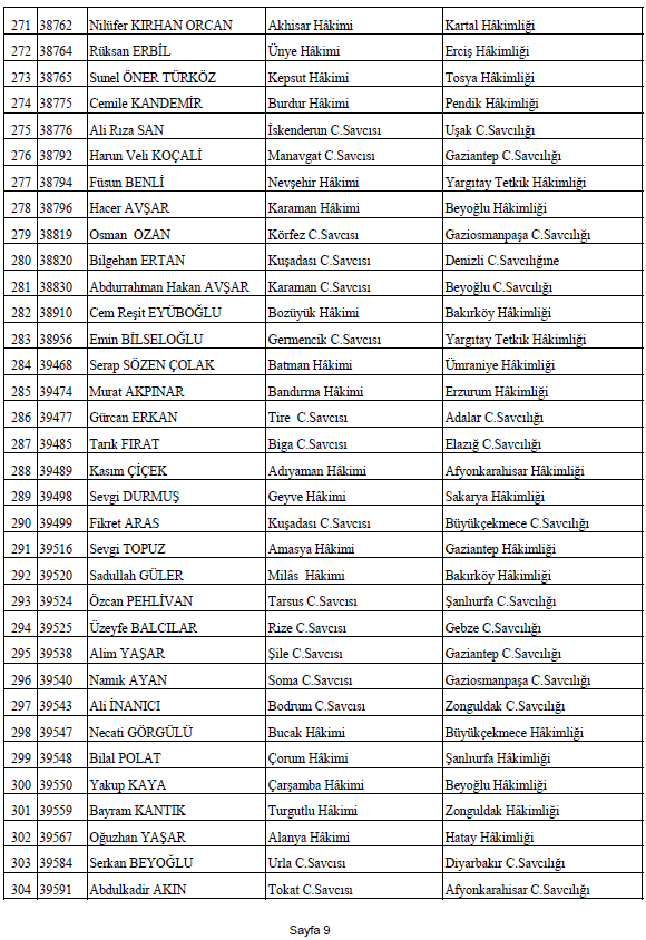 HSYK'da ataması yapılan hakim ve savcılar LİSTE