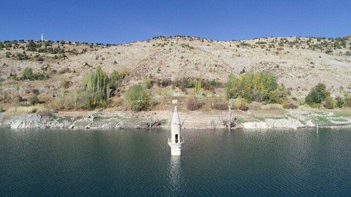 Yaşanan kuraklığı su altında kalan minareye bakıp ölçüyorlar