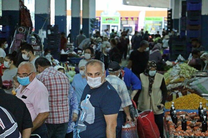 Yine bir semt pazarı yine sosyal mesafe sıfır: Vakaların tırmanışa geçmesini umursamadılar