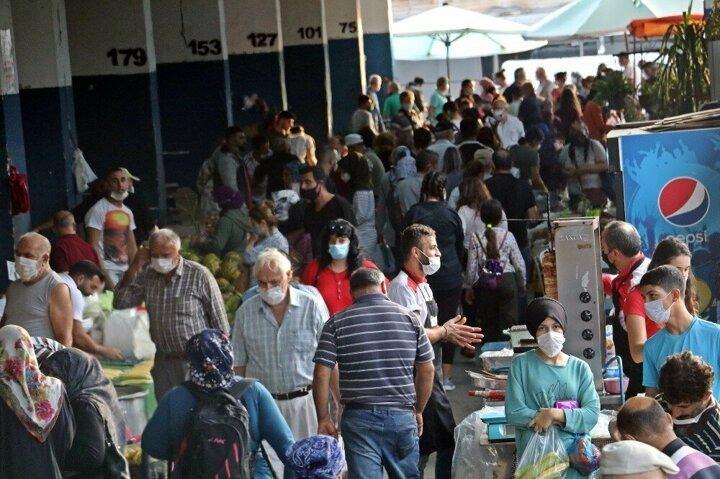 Yine bir semt pazarı yine sosyal mesafe sıfır: Vakaların tırmanışa geçmesini umursamadılar