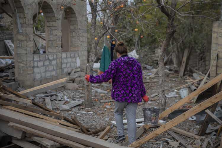 Ermenistan'ın saldırdığı Gence'de halk evlerini onarıyor