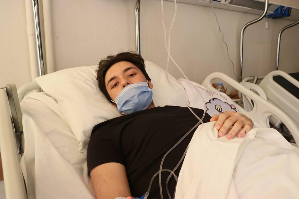 Ege Üniversitesi Çocuk Hastanesi'nde tedavi altına alınan Okan'ı ziyaret eden Dokuz Eylül Üniversitesi Rektörü Prof. Dr. Nükhet Hotar, küçük kıza keman hediye etti.
