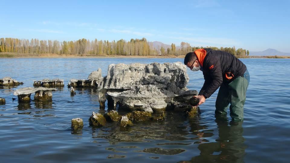 Van Gölü'nün çekilmesiyle tarihi yapılar ortaya çıktı