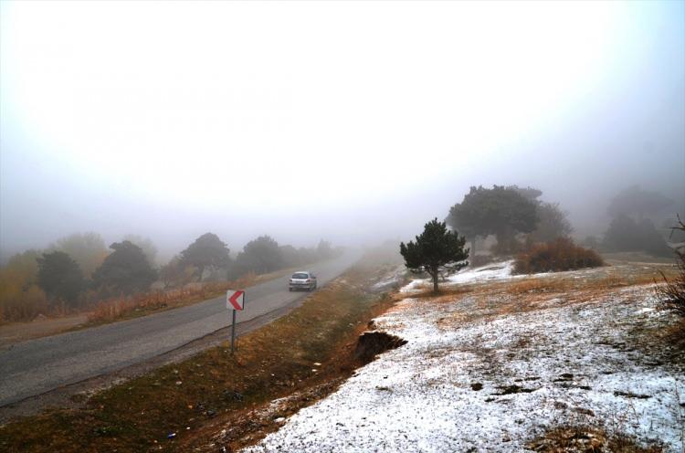 Konya’nın yüksek kesimlerinde kar yağışıyla birlikte etkili olan sis, sonbahar renkleriyle de birleşerek güzel görüntüler oluşturdu.