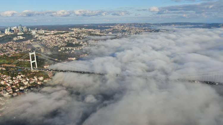 İstanbul Boğazı'ndaki yoğun sis havadan fotoğraflandı