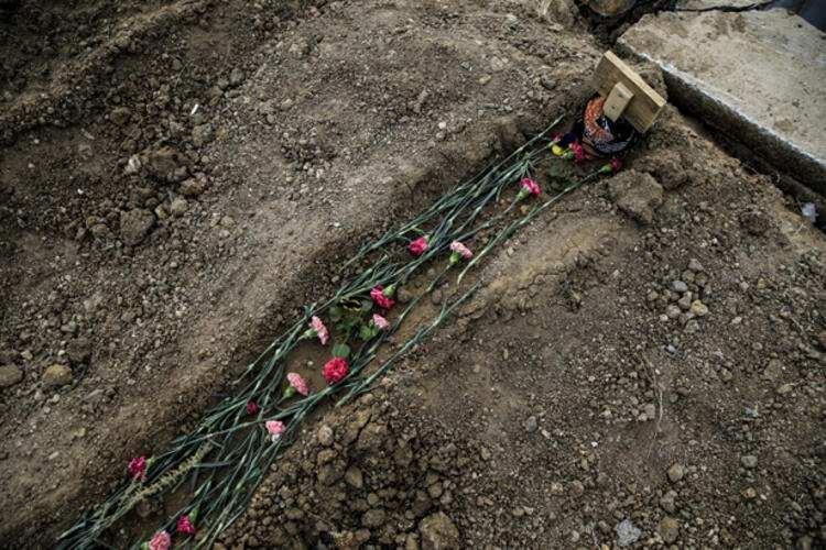 Hüznün hakim olduğu mezarlığa gelen vatandaşlar, cenazesi olağanüstü şartlarda defnedilen yakınlarının mezarı başında dualar okuyor, mezarına karanfiller bırakıyor.