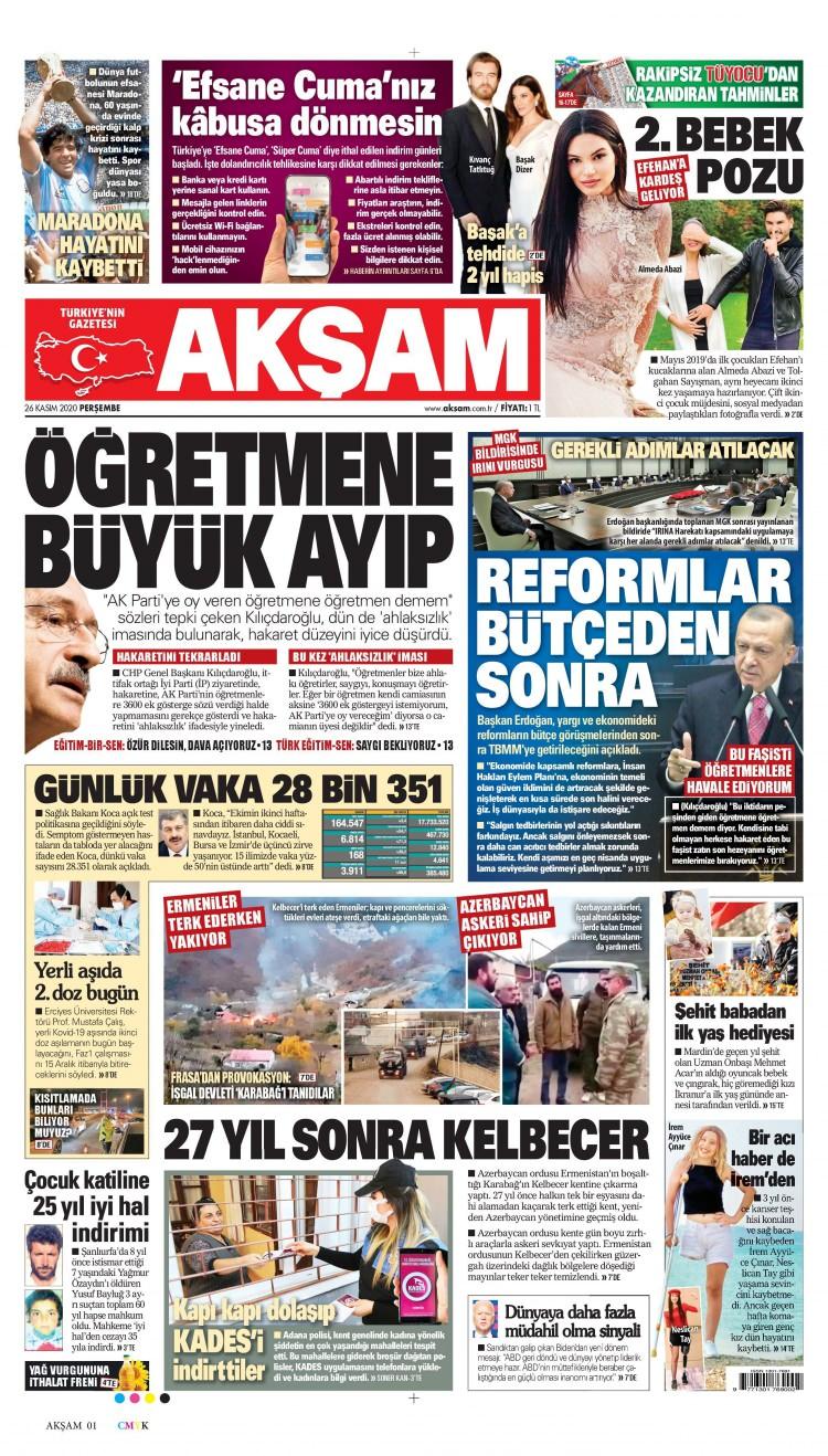 26 Kasım Perşembe gazete manşetleri - Korona katliamı!