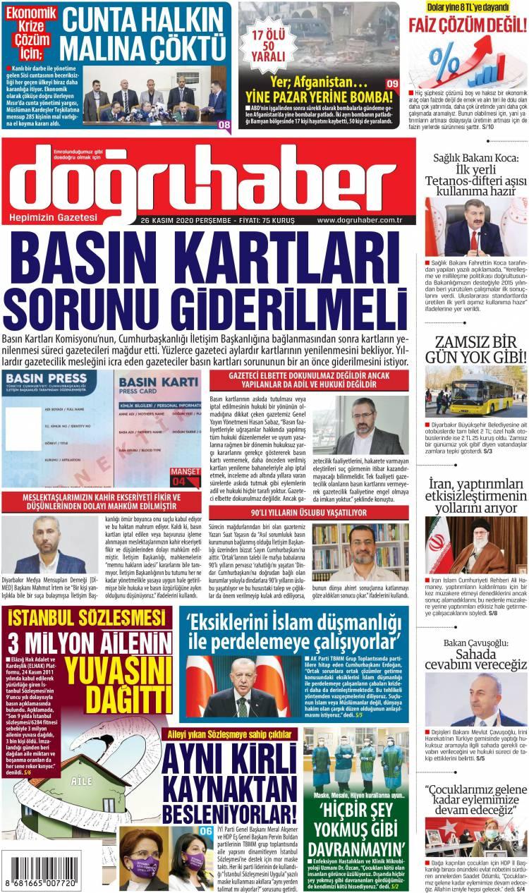 26 Kasım Perşembe gazete manşetleri - Korona katliamı!