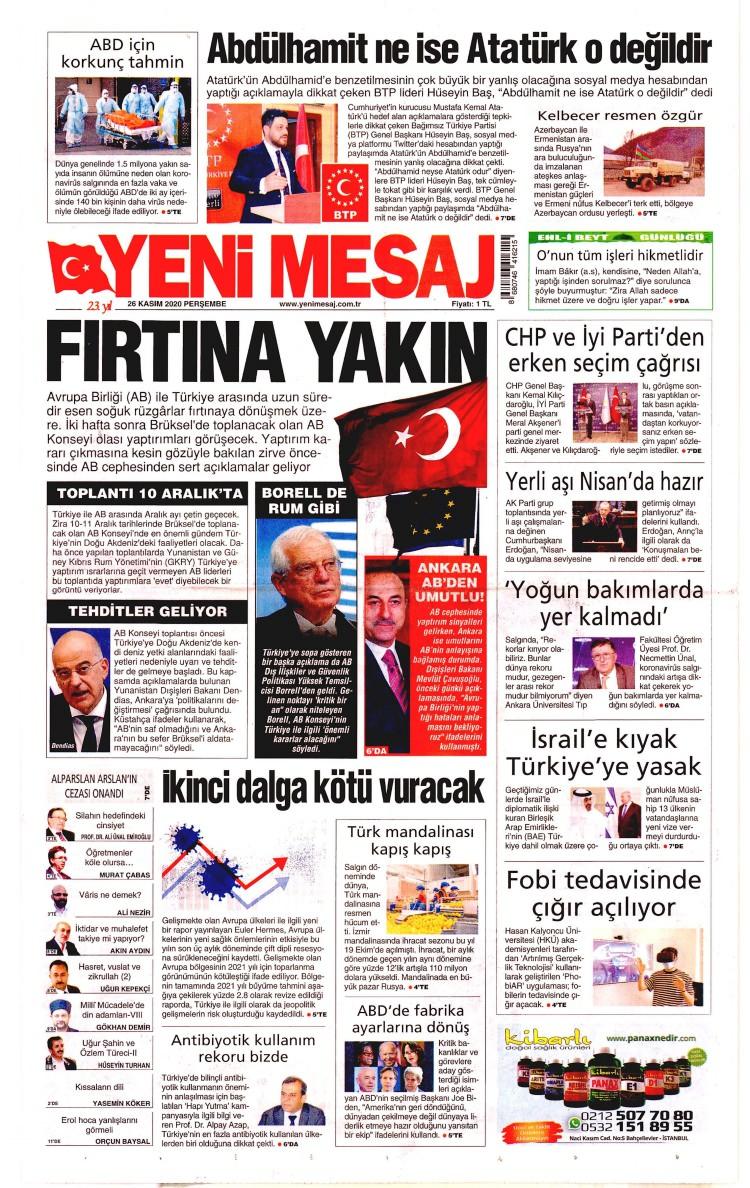 26 Kasım Perşembe gazete manşetleri - Korona katliamı!