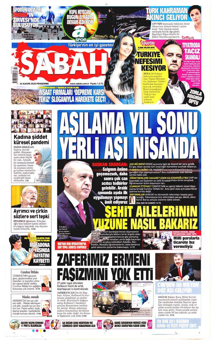 26 Kasım Perşembe gazete manşetleri - Korona katliamı!
