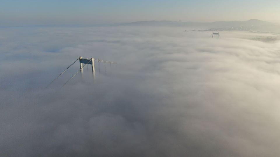 İstanbul'da sabah saatlerinde yoğun sis etkili oldu. Sis nedeniyle Fatih Sultan Mehmet Köprüsü adeta kayboldu. Büyüleyen sis manzarası havadan görüntülendi.